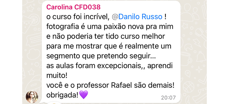 Fotógrafo profissional há mais de 15 anos, especializado em retratos e fotografia de pessoas. Fundador do método People, que já formou mais de 15.000 fotógrafos em todo o Brasil.